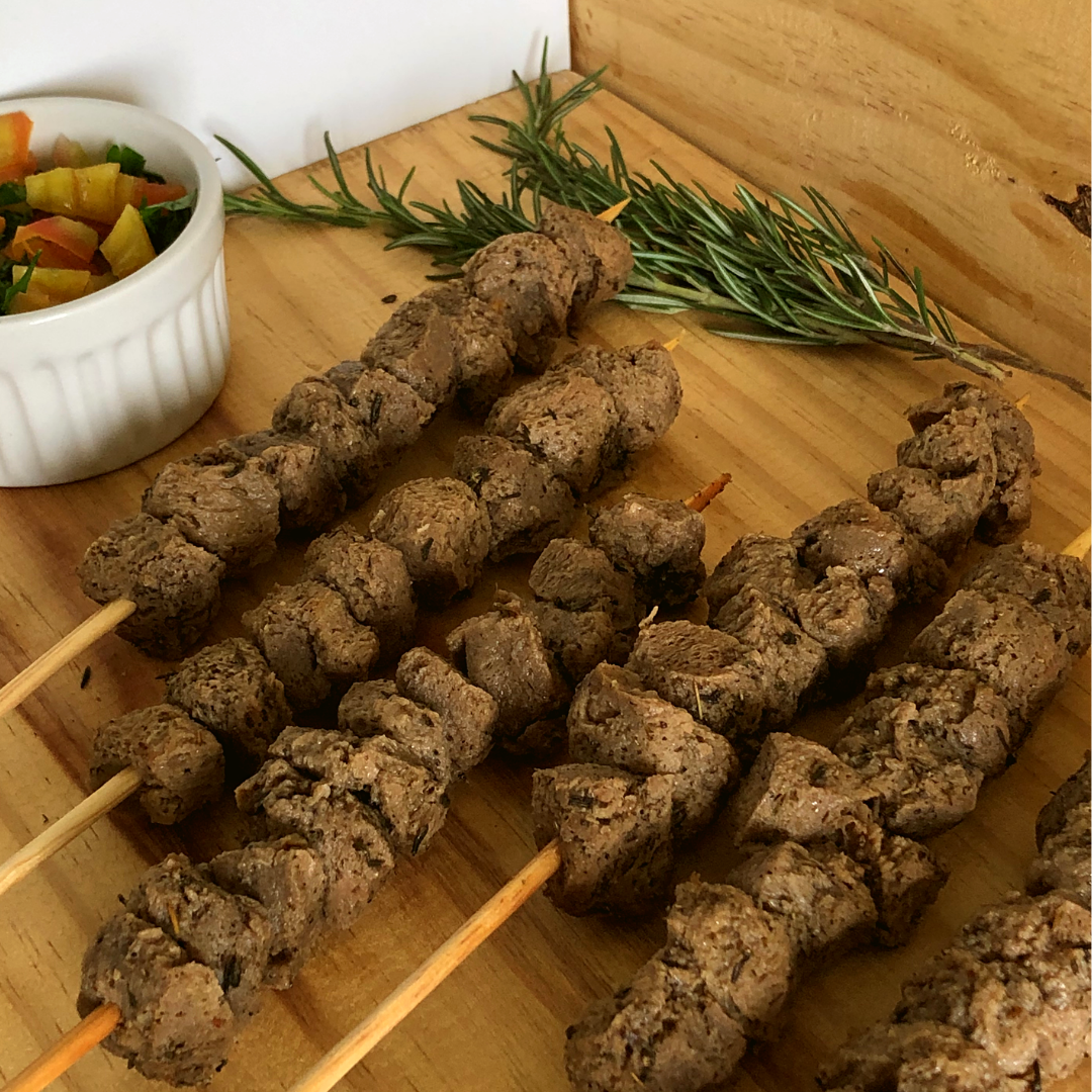 Churrasco vegano de soja no espeto já temperado / não transgênico.